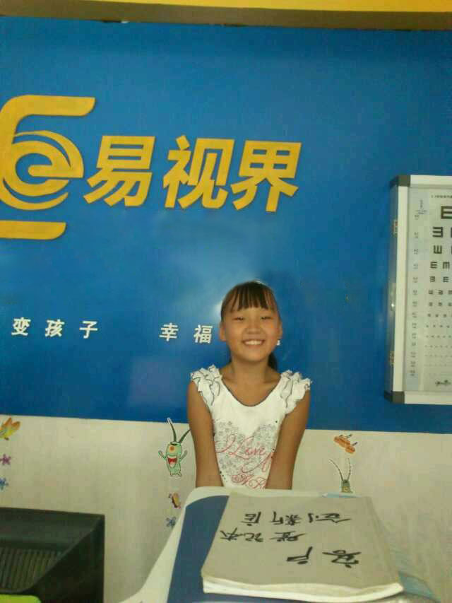 大家好,我是創(chuàng)新街小學(xué)六二班的學(xué)生牛悠然,在上小學(xué)四年級(jí)的時(shí)候就開(kāi)始戴眼鏡了,當(dāng)時(shí)父母也不太懂,就帶我到二院去檢查了一下,到那擴(kuò)瞳之后就戴上了125度的眼鏡,當(dāng)時(shí)我也沒(méi)有太注意,只是感覺(jué)比之前看清楚了很多,可是到了五年級(jí)下學(xué)期的時(shí)候,眼鏡越來(lái)越不清楚了,于是爸媽又帶我去了醫(yī)院,檢查過(guò)后爸媽驚呆了,一年時(shí)間增長(zhǎng)了100多度,從此以后爸媽就到處給我找各種視力矯正機(jī)構(gòu),就在快對(duì)這個(gè)行業(yè)絕望的時(shí)候,我們來(lái)到了易視界,如今我已經(jīng)做完半年了,視力還一直保持在1.0,是易視界的老師們幫我摘掉了眼鏡,教會(huì)了我正確的用眼習(xí)慣,感謝易視界的哥哥姐姐們,還我一個(gè)清晰的視界!